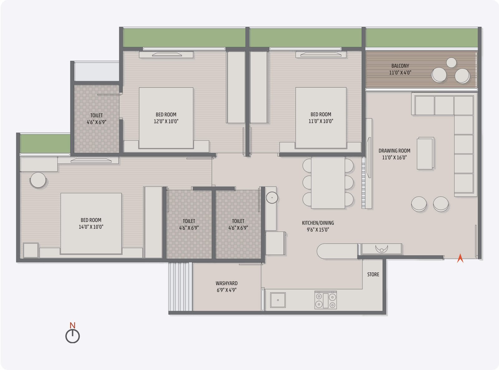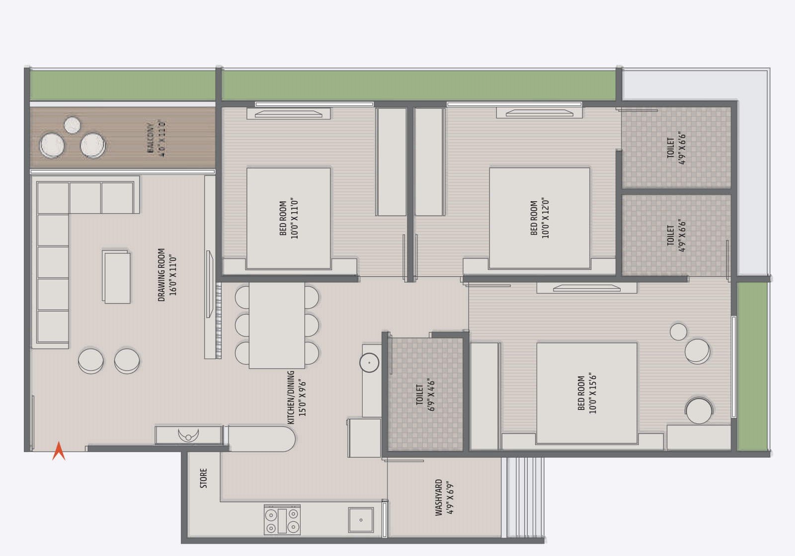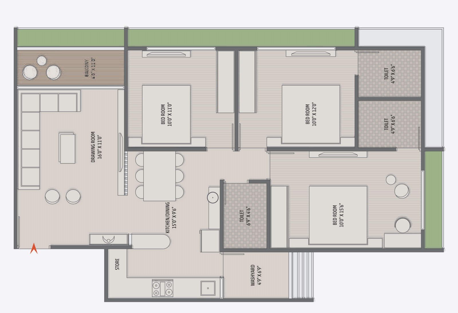 | 3 BHK | 1760 SQFT | 931 SQFT | 90 Lacs |