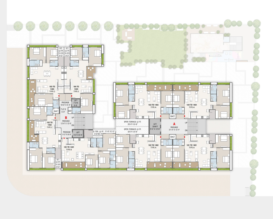 | TYPE A (3/4 BHK) | 2880 SQFT | 1411 SQFT | 1.73 Cr |