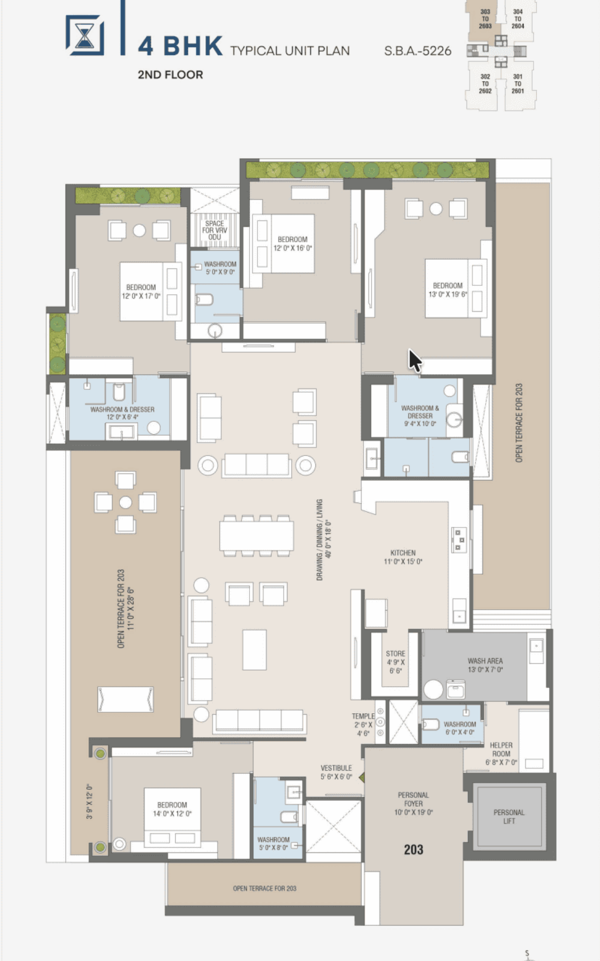 | 4 BHK | 5226 SQFT | 2428 SQFT | Request On Call |